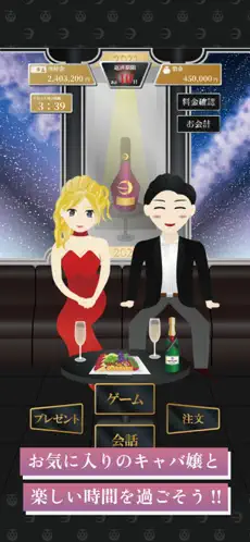 簡単に言うと、キャバクラの世界をスマホで体験できるゲーム。基本的には、オーナーになったり、お客さんになったり、キャバ嬢そのものになったりして遊びます。