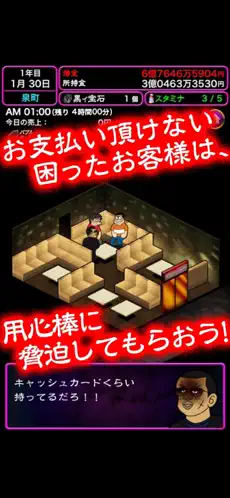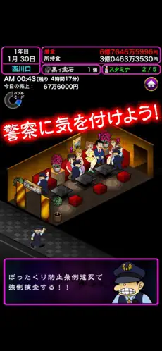 ただのボッタクリで終わらないのが「さらにぼったくる」システムなんです。借金返済のスリルと追加で稼ぐ快感は一度味わったらやめられません。キャバ嬢や用心棒をうまく配置して、警察にバレないように注意しつつ最大利益を狙う緊張感がたまらないんです。