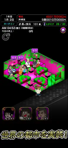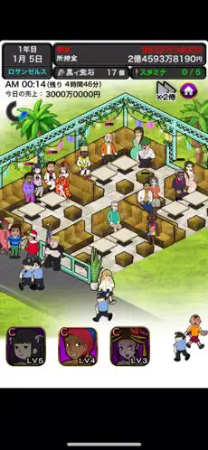 貧民エリアから金持ちエリアまで、5つのエリア47ステージを順番に制覇していく下剋上システムが面白いです。下流階級、中流階級、上流階級、金持ちエリアと上がっていくので、本当に成り上がる感覚が味わえます!各エリアごとに客層も変わるので、飽きずに長く楽しめるゲームになるはず。