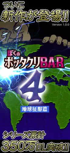 「ぼくのボッタクリBAR4 -地球征服篇-」は、世界中を舞台に遊べるダークな経営シミュレーションアプリ。